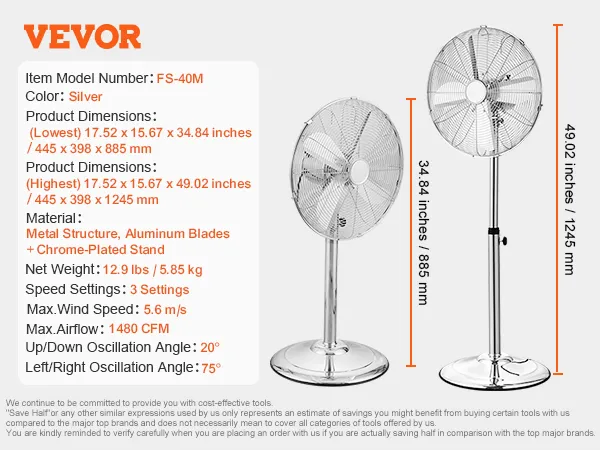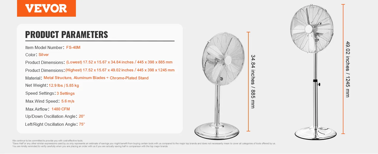 Height Adjustment: This bedroom fan is adjustable between 34.8 to 49 inches, you can set the fan height to your preference, whether standing, seated, or lying down.