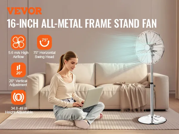 Need a break from the heat and a comfortable indoor environment? Choose our stand fan to enjoy a refreshing breeze instantly. With strong airflow and adjustable height and angle, it cools any corner of your room.