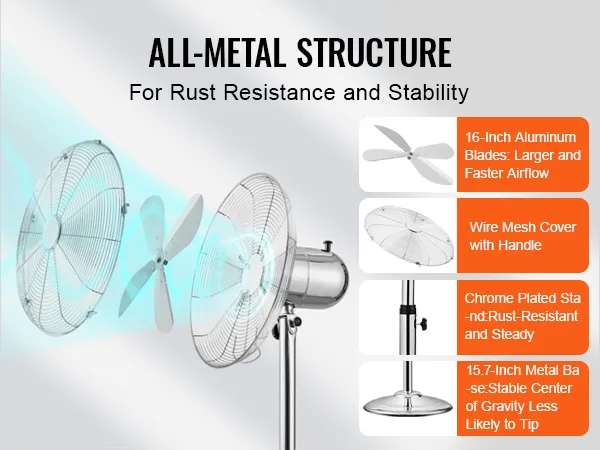 Metal Structure, Aluminum Blades + Chrome-Plated Stand