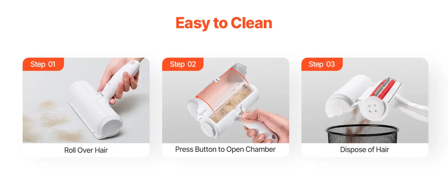 Extra-large Hair Chamber: The specially designed lint roller for pet hair removal easily collects the discarded hair. Simply clean the chamber after use for a quick and easy cleanup.