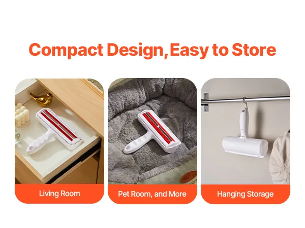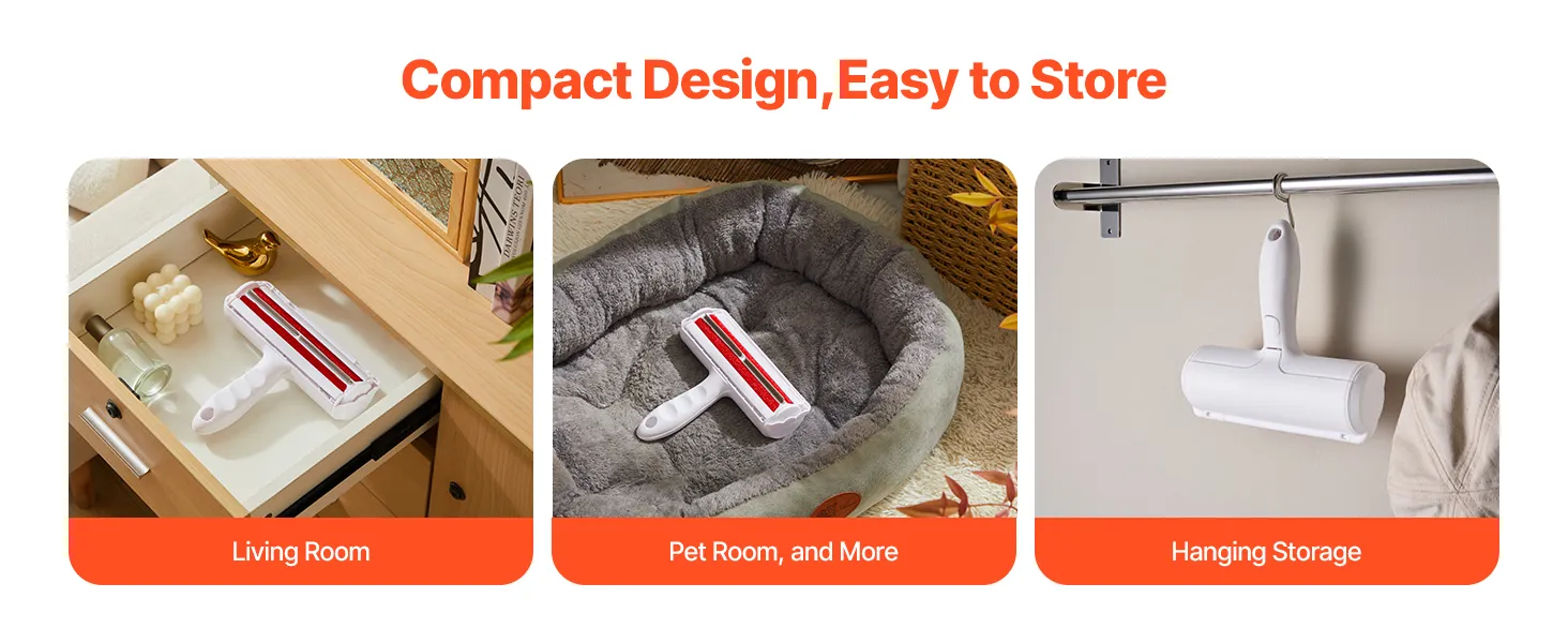 Compact and lightweight, this pet hair removal tool is easy to use and store anywhere. Keep it handy for quick touch-ups!