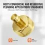 Pipe fittings work with various pipes, for heating, shower, and plumbing applications. Made from durable solid brass, they resist corrosion and high temperatures for long-lasting performance. It is an ideal choice for any plumbing project. Choose VEVOR for trusted quality.