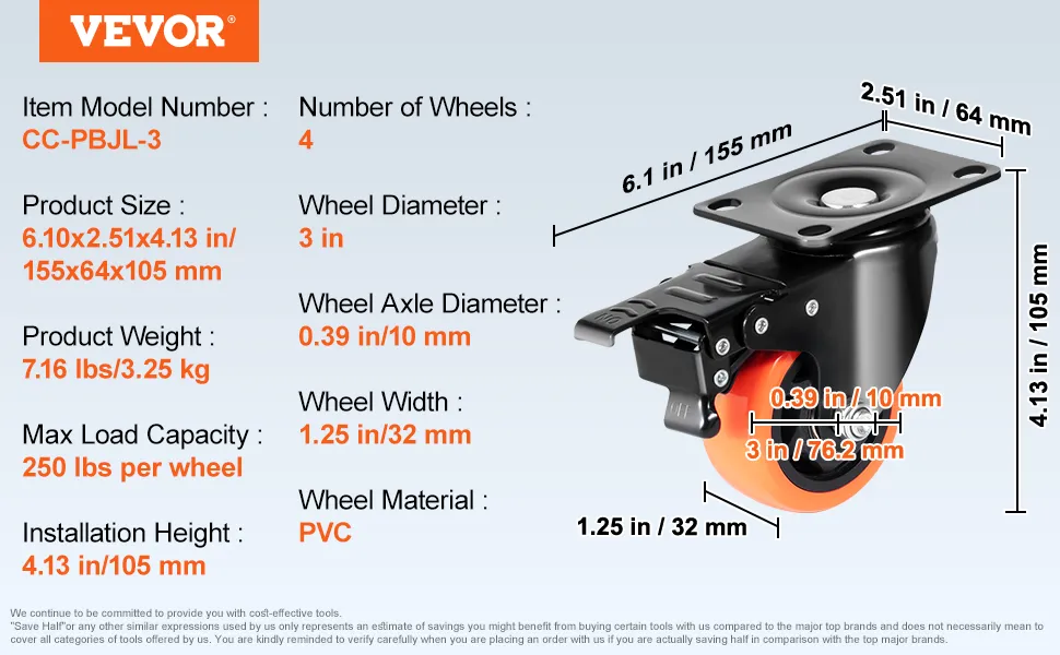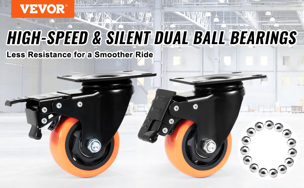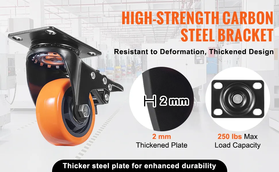 They are both heavy duty and non-marking. The VEVOR caster wheels can handle loads up to 250 lbs. This makes them ideal for various applications, such as furniture, workbenches, and carts. The non-marking PVC wheels ensure they won't damage your floors. No matter if you're moving heavy tools or delicate furniture, these wheels perform well. They excel in many projects. Their strong build guarantees longevity and reliability. These qualities make them a worthy investment.
