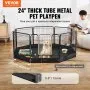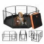The eight 24x24-inch pieces that make up the metal portable dog fence are easy to connect to make a safe play area for small to medium-sized dogs. It gives pets space to play, rest, and move around, supporting their health and reducing stress. It's easy to set up in the yard, on the porch, or in the living room. The open-top design keeps pets visible, allows supervision and interaction, and maintains safety.