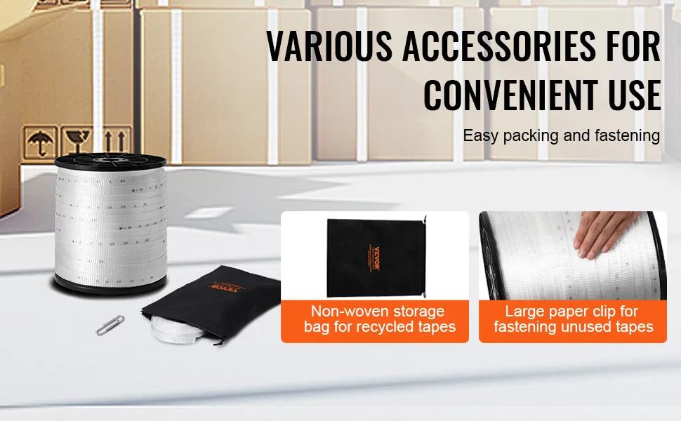 This is a great tool for organizing storage. It includes both woven and non-woven storage bags and an oversized paperclip-style fastener. These accessories help keep the tape neat and ready to use. The storage bag prevents tangling and keeps the tape clean. The fasteners ensure that the tape remains secure and simple to recover. They make it simple to store and transport the tape. You can keep unused or used tapes organized and prepared. This ensures you can quickly access the tap when needed. Accessories add to the overall convenience and usability of this product.