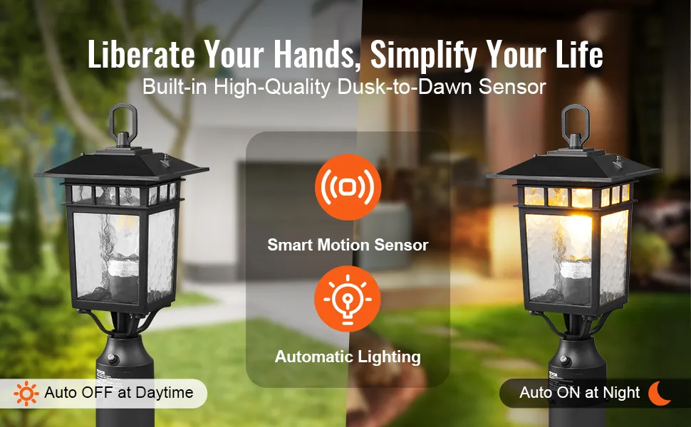 You don't have to do anything to have automatic lighting. The outdoor post light features a built-in sensor. It turns on when the sun goes down and off when it comes up. It saves electricity and keeps your paths well-lit. The light changes depending on the surroundings, so it stays bright at night. It works great on roads, patios, and even in gardens. The smart sensor makes things safer and uses less electricity. The fixture is compatible with most conventional poles, and installation is straightforward. A light that changes every night will make your outdoor settings safer, more stylish, and more convenient.