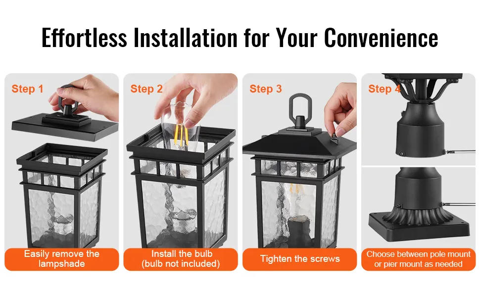 Installation will be easier and faster. The pier mount light comes with all the necessary hardware for quick setup. It comes with screws, stoppers, and a sturdy base. The guide for assembly is straightforward. You can put it on pillars, piers, or pedestals. You don't need any tools to install it, even if you're a beginner. This makes it perfect for outdoor lighting projects that you perform yourself. The stable design makes sure that the pole lamp stays in place. You can acquire a bright, reliable light without hiring a specialist. Quickly and easily enjoy a well-lit path or garden area.