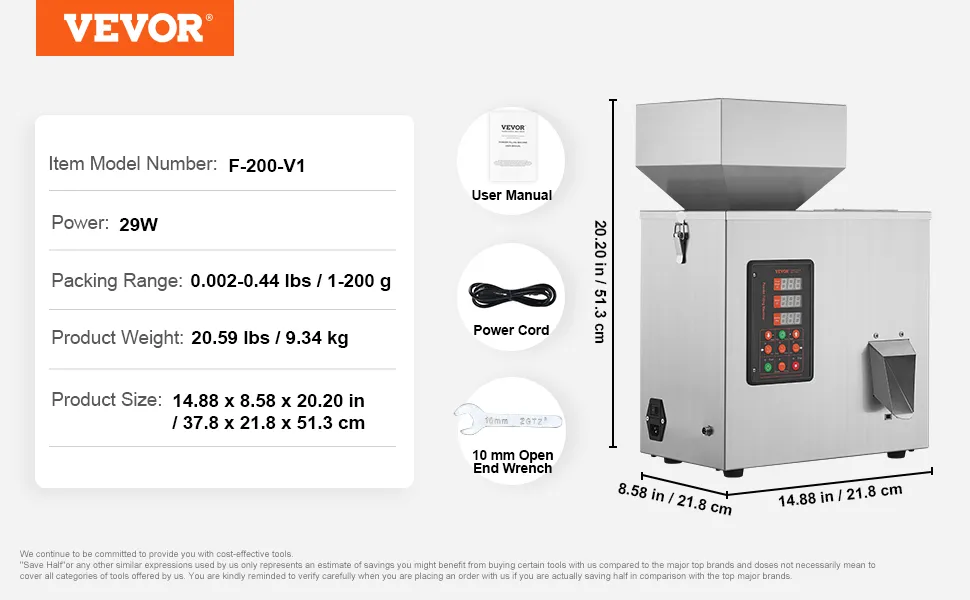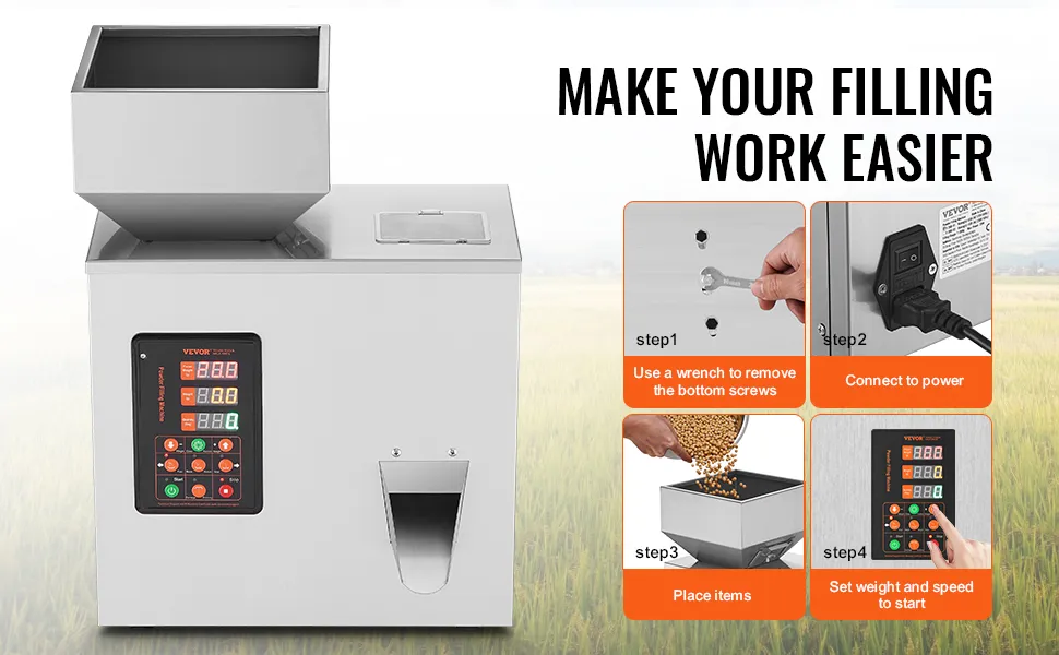 The VEVOR tea seeds filling machine is built for efficiency. It offers rapid and precise filling. This is essential for maintaining productivity. The advanced features of the machine ensure minimal error. They improve the overall quality of filled products. No matter if it's for commercial or personal use, it performs well. Our machine’s ability to handle various materials adds to its versatility. You can hire reliable and efficient filler solutions easily. So, this makes it a valuable investment for different applications.