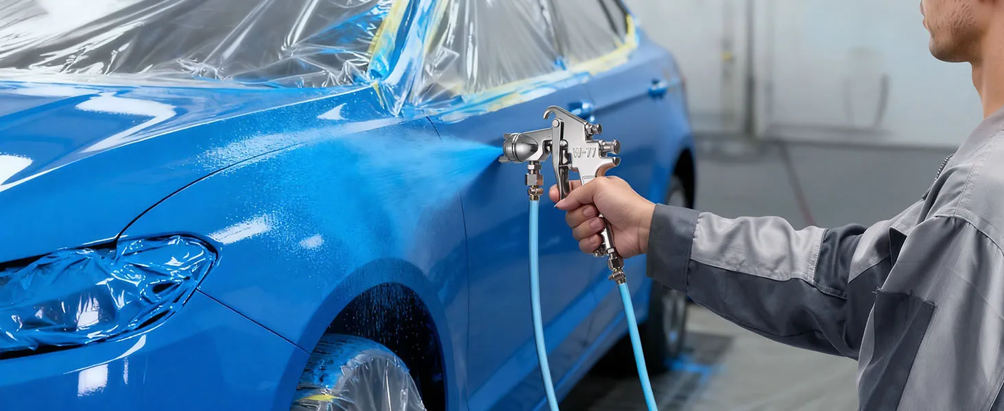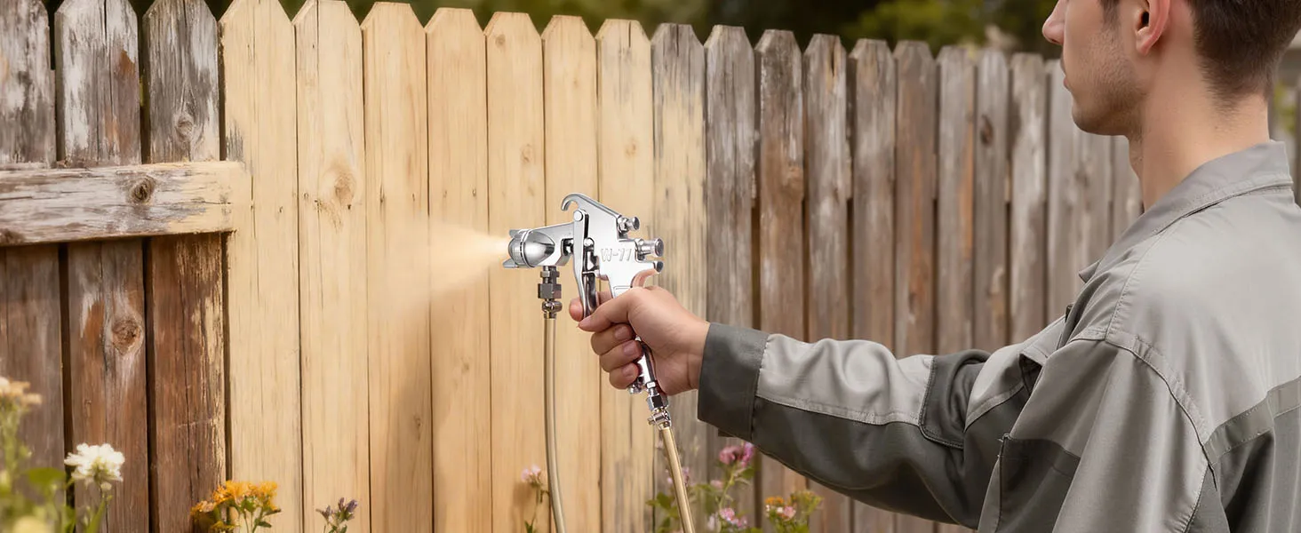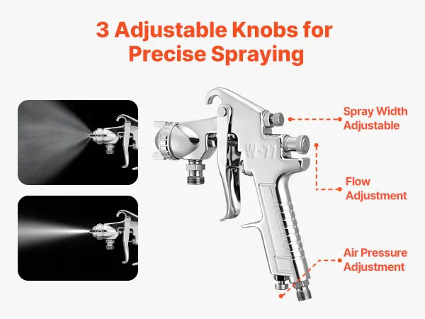 Dual Adjustable Guns: Two adjustable guns (1.8mm & 3.0mm) support control of spray width, paint flow, and air pressure, enabling both detailed and broad spraying. The central pneumatic spray gun ensures efficient, versatile performance on furniture, walls, fences, and automotive surfaces