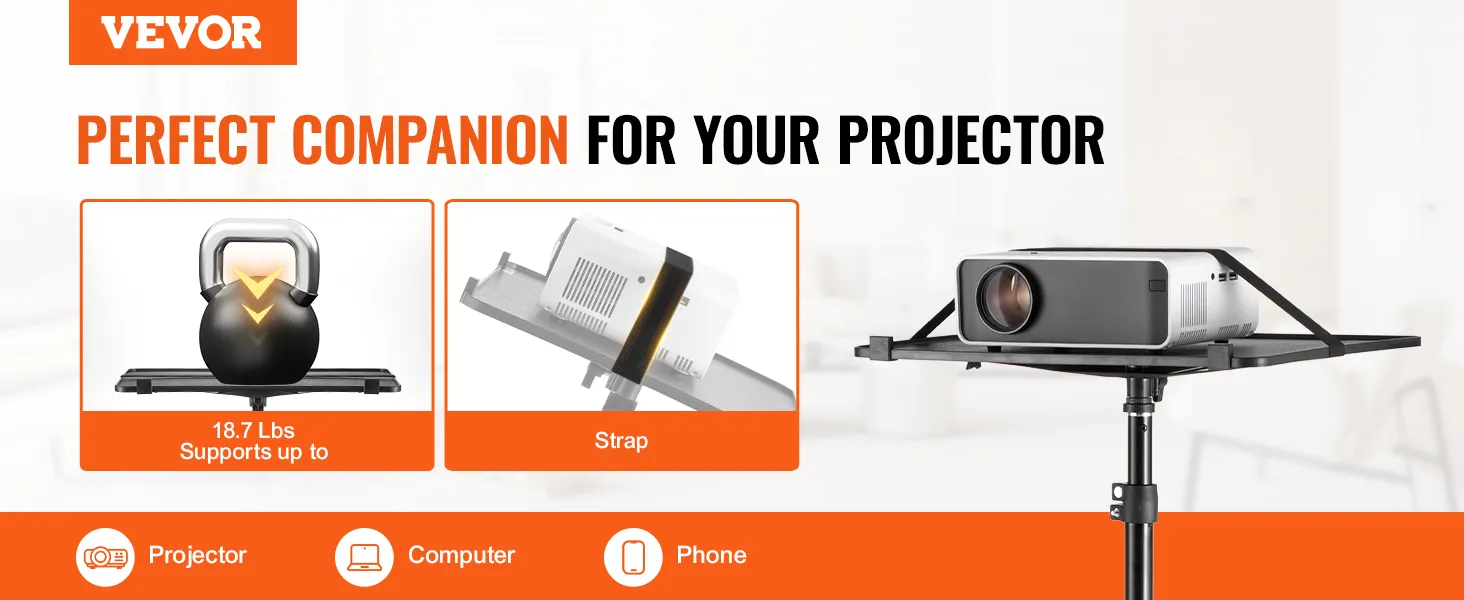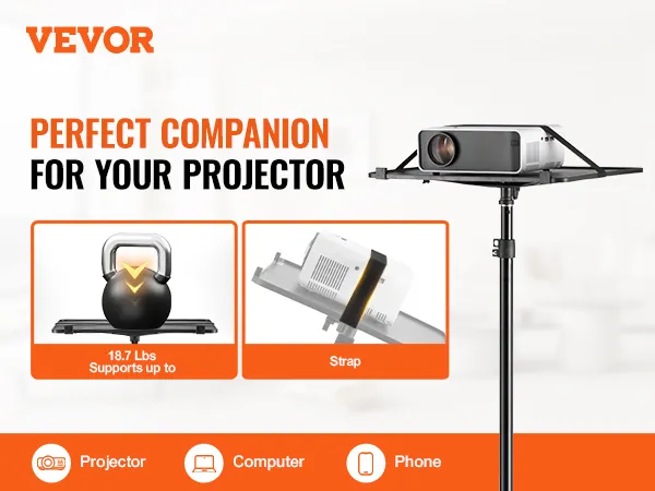 Fuerte compatibilidad: este soporte para proyector con trípode admite computadoras portátiles, grabadoras, proyectores y más, lo que lo hace perfecto para músicos, maestros y estudiantes: ¡simplemente conéctelo y listo!