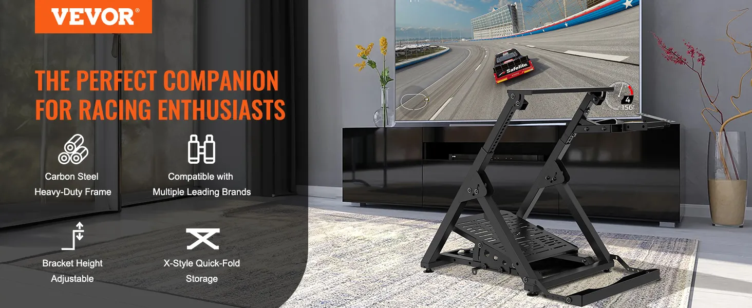 VEVOR Foldable Racing Steering Wheel Stand, Height Adjustable Universal Base Compatible with Logitech & Thrustmaster Racing Wheel and Pedal, Movable Wheels Heavy-duty Frame Standard GT/Formula Seating