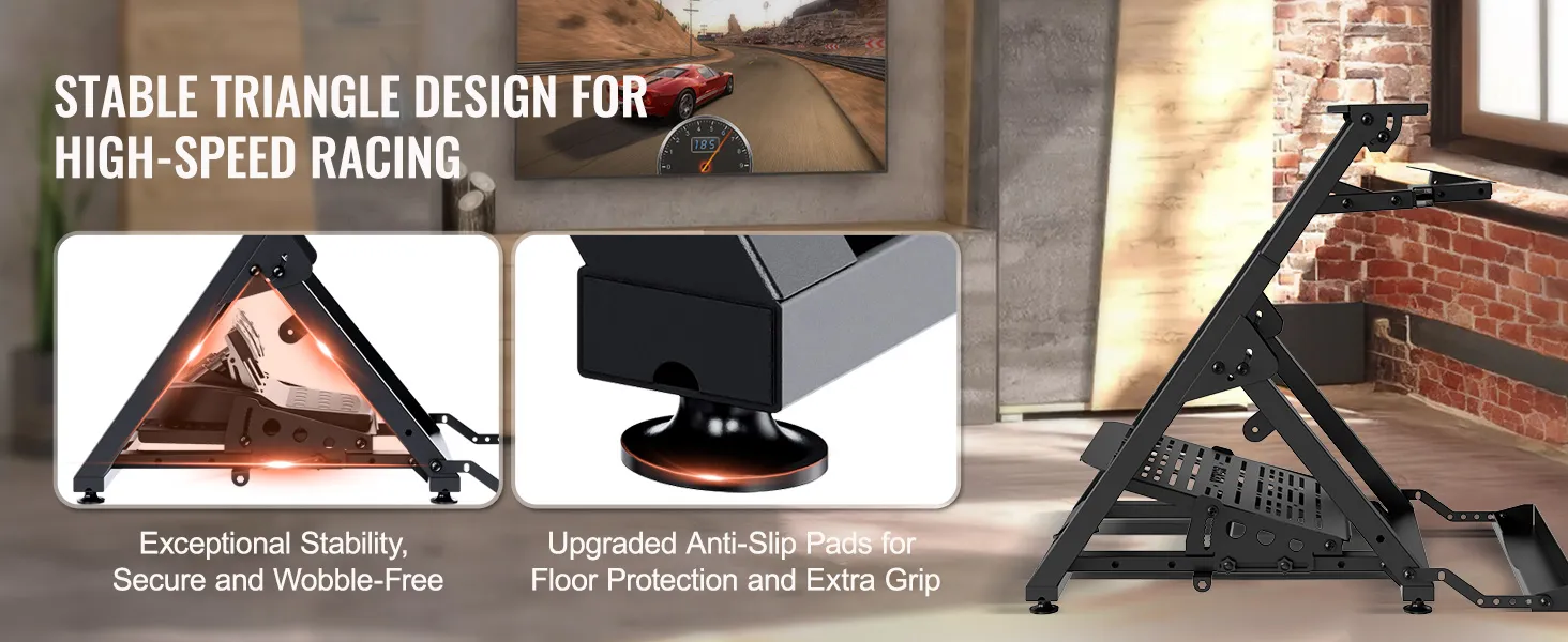 No more disturbances from wobbling during gaming; our triangular mechanics stability design ensures a sturdy and shake-free stand. Upgraded anti-slip pads not only provide exceptional stability but also protect your floor