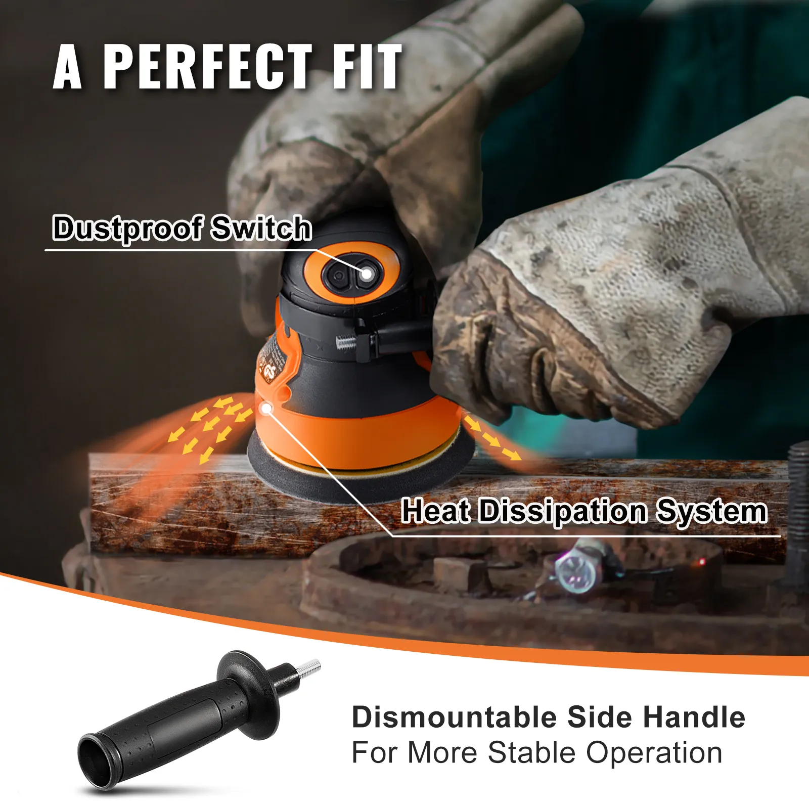 Sanding Everywhere: Are you tired of your sanders lacking the ability to adapt to different surfaces? VEVOR's random orbit sander is ideal for smoothing rough surfaces on wood, metal, and plastic. Take it to your workshop, factory, basement, or toolroom, and create your masterpiece!