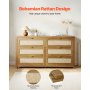 VEVOR 6 Drawer Rattan Dresser, Double Dresser for Bedroom, Natural Rattan Chest of Drawer with Metal Handle, Modern Wood Chest Clothing Organizer & Storage for Bedroom, Living Room, Hallway, Walnut