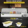 The VEVOR refrigerated condiment prep station offers efficient cooling. Its 150W compressor keeps ingredients fresh. The R290 refrigerant system circulates cold air well. The temperature range is between 35.6°F and 46.4°F. This keeps your condiments and ingredients at the ideal temperature. The electronic thermostat provides easy temperature control. The external LED panel shows the exact temperature. The one-click defrost function ensures smooth, cold airflow. This refrigerated prep station helps keep ingredients cool and ready for use. It is perfect for busy kitchens that need reliable cooling!