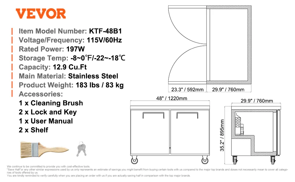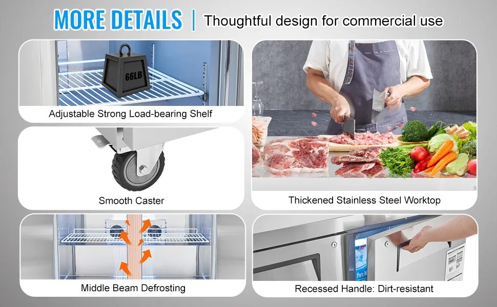 Ensure that all ingredients are easily accessible and well-organized. The commercial refrigerator has 12.9 cubic feet of frost-free storage space. The big compartments are great for safely storing meats, veggies, and sauces. It stops ice from building up and keeps things fresh for longer. Staff can change the area for trays and containers with adjustable shelves. The layout makes it easier to make sandwiches. Having things organized makes food last longer and speeds up prep time. The ingredients stay at safe temperatures. During busy times, staff can swiftly switch out items.