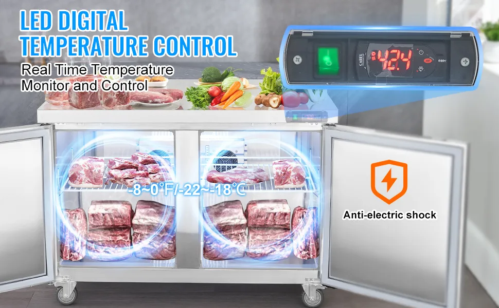 Prevent ice from building up and simplify maintenance. This Food Prep Station maintains a consistent temperature for meats, cheeses, and vegetables. The frost-free method keeps food fresh and ready to eat. Instead of defrosting, chefs can focus on cooking. Design that uses less energy lowers the cost of power. The technology enables the compressor to operate more efficiently and last longer. It is excellent for kitchens that prepare large quantities of food and keeps food fresh and safe. The cold air flows evenly through all the compartments. This function accelerates the process of preparing sandwiches and salads. During busy times, staff can count on the refrigerator to stay cold without stopping.