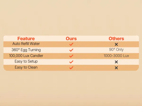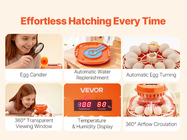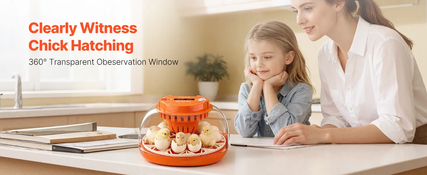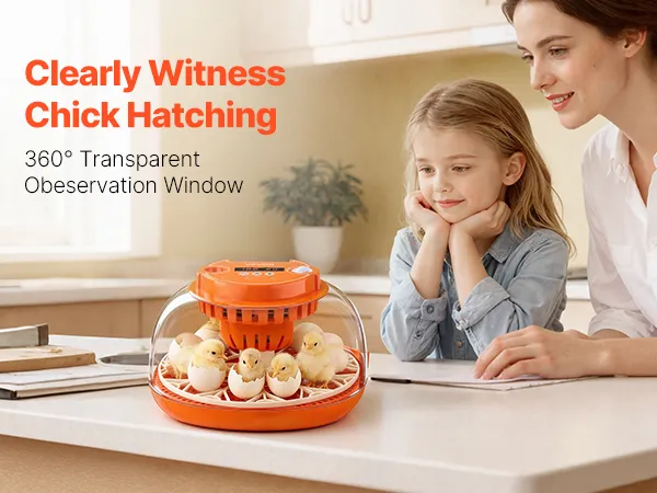 Egg Candler & 360° Viewing Window: Our automatic egg turner comes with a 10W Lux high-brightness egg candler for easy embryo inspection. The 360° transparent viewing window lets the whole family witness the process of the chicks' birth