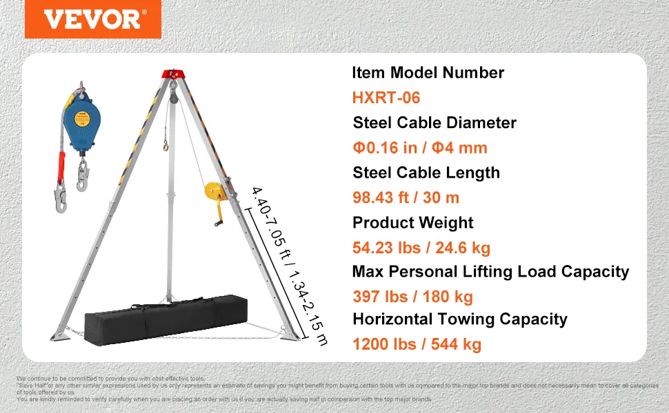The VEVOR confined space tripod kit is perfect for heavy-duty tasks. It has a 1200 lbs towing capacity, making it ideal for tough jobs in tight spaces. The tripod has an excellent design that ensures durability. The tripod stands out because of its robust structure, making it suitable for rescue missions. You can trust the tripod to support lifting and towing activities with confidence. It provides a good foundation for different operations. People who need efficient and strong equipment have reliable support for lifting or towing activities. Our tripod is designed to perform under pressure.