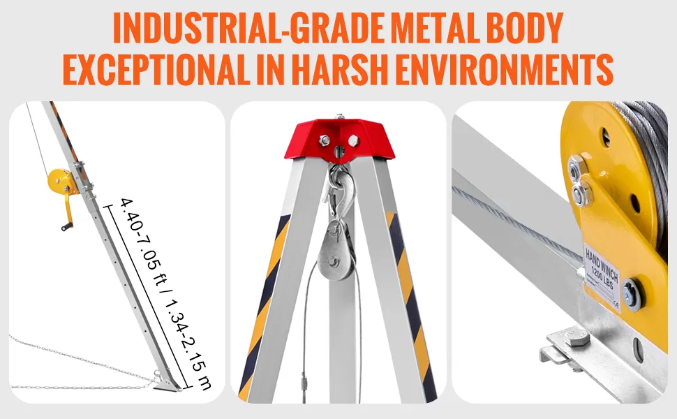 The 1200 lbs winch tripod comes with adjustable legs, ensuring stability on uneven terrain. The legs can be adjusted to fit different ground surfaces, making it versatile for various environments. Our adjustable legs are essential for safety, providing a stable base for high-stress tasks. We recommend the tripod for those who need adaptable equipment. It can handle different terrains easily. These legs are easy to adjust, making the tripod user-friendly. Its design emphasizes stability and versatility, making it a handy tool for professionals.