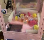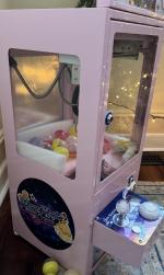 Also I used little capsules to hold prizes in like you would get a from a quarter machine. I also padded the edges so the crane could reach everything (it has a hard time picking up stuff that’s directly up against the glass and is smaller, like the capsules). Just be careful getting prizes that are too large as the flap to pull them out pushes in, making larger items impossible to get out. You can unscrew the flap if you have larger stuff, so it’s not the end of the world. I found 3.5” circles / capsules are about the max, or regular sized rubber duck kind of prizes. Images attach to show some of the customization I did and using the packaging material to make barriers.