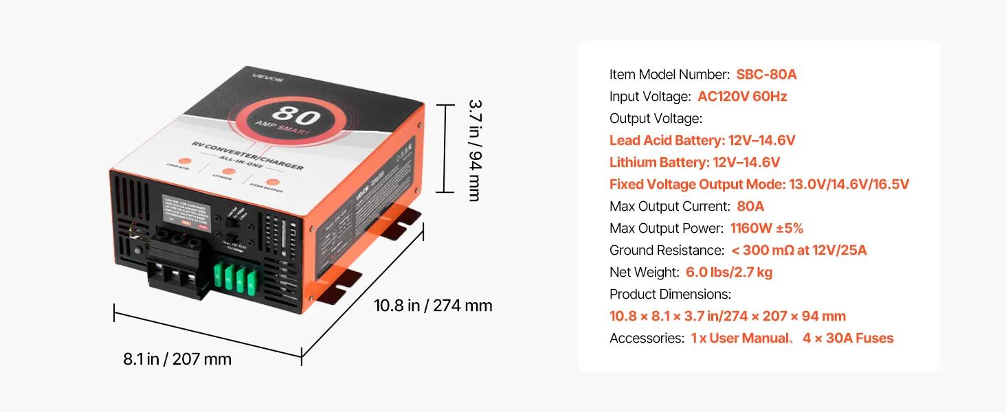 80A RV Power Converter Charger, Power Up Your Adventures