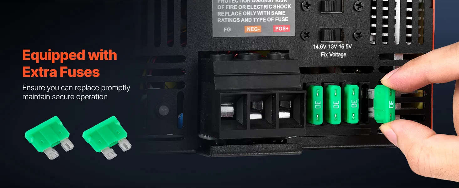 This RV battery charger converter is equipped with extra fuses for you to replace quickly.