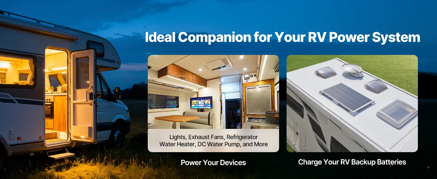 Wide Battery Compatibility: Converts standard 120V AC into a stable 12V DC power supply. This RV power converter is ideal for charging batteries or powering 12V RV devices. Supports both lead-acid and LiFePO4 batteries (Battery not included)