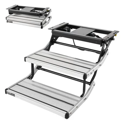 VEVOR RV Steps, 2-Step, 440 lbs Load Capacity, Electric Retractable RV Stairs, Telescopic Folding Aluminum Alloy Camper Steps, Steel Frame Non-Slip Entry Stair for Camper Van Motorhome Travel Trailer