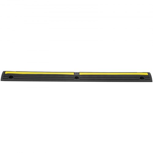 VEVOR 2PCs 6 ft/72'' Rubber Speed Hump, 2 Channel, 22000 lbs Capacity Heavy Duty Traffic Speed Bump, with High Reflective Yellow Strip 8 Expansion Screws and 1 Drill, for Asphalt Concrete Gravel Roads