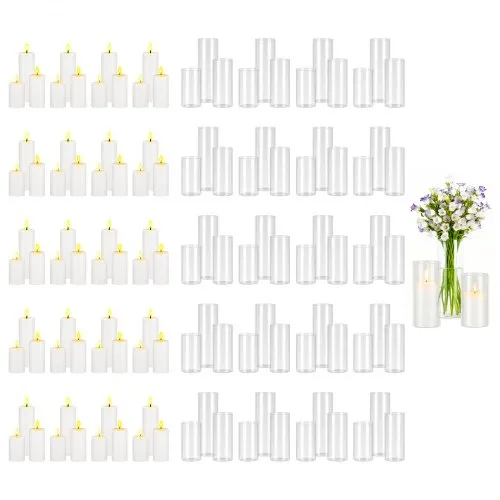 VEVOR Pillar Candles and Glass Vases Set 120 Pcs, Clear Cylinder Hurricane Candle Holders for Wedding Centerpieces, Tall Vase for Table Decor, Wedding Party,Thanksgiving,White (2.56" x 4.7",5.9",7.9")