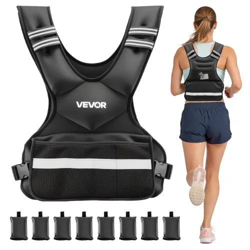 VEVOR Weighted Vest, 8 lbs Body Weight Vest for Men Women, with Reflective Stripe, Adjustable Buckle, Workout Equipment for Strength Training, Running, Jogging, Fitness, Muscle Building, Weight Loss