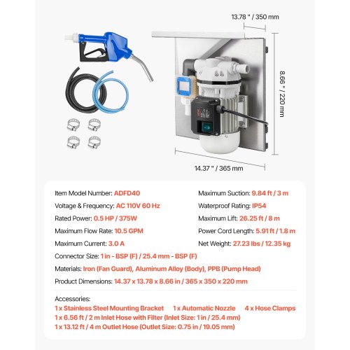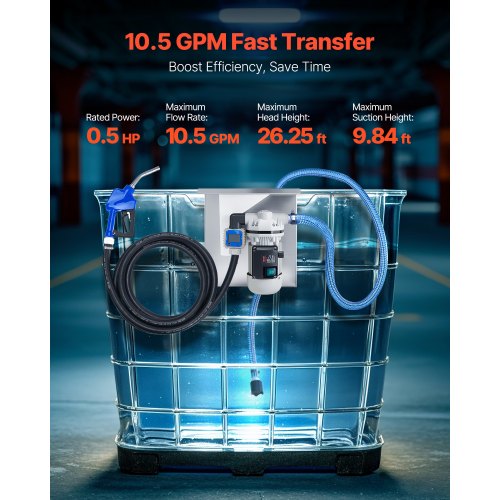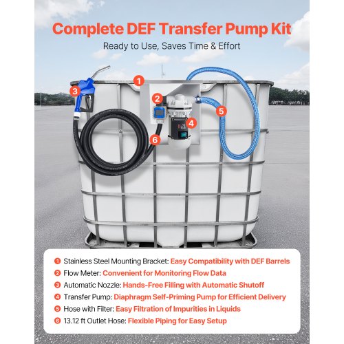 VEVOR 12V DEF Transfer Pump Kit, 8.5 GPM, Diaphragm Irrigation Self Priming Electric Water Pump, with 58 Gallon Tank, Automatic Nozzle, 13.12 ft Hose, 26.25 ft Lift, for Diesel Exhaust Fluid Urea