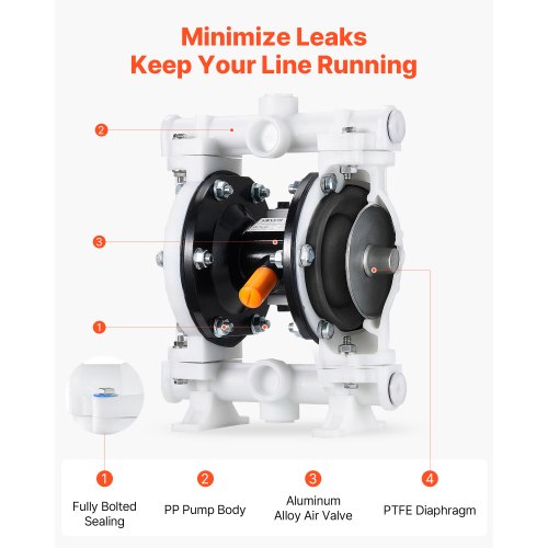 VEVOR Air Operated Double Diaphragm Pump, 25 GPM, 1 inch Inlet & Outlet Pneumatic Waste Oil Transfer Pump, Max 100 PSI, Polypropylene Body, Air-Operated for Diesel, Grease, Kerosene, Gasoline & Oil