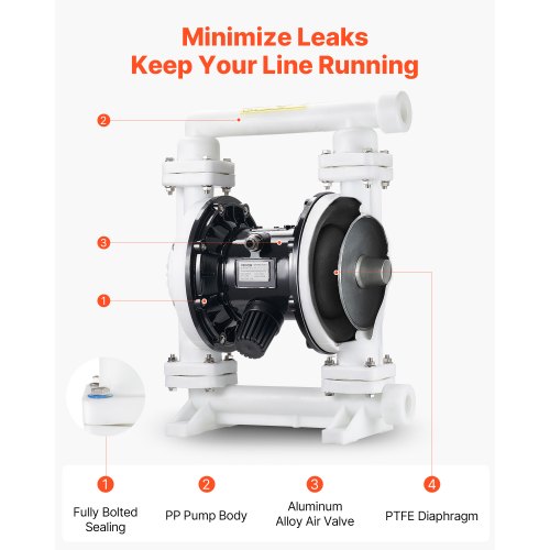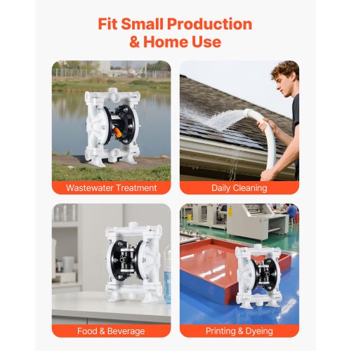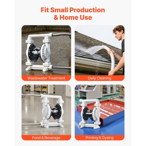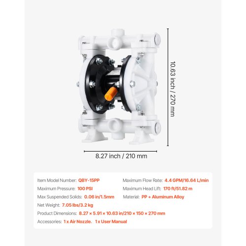 VEVOR Air Operated Double Diaphragm Pump, 4.4 GPM, 1-1/2 inch Inlet & Outlet Pneumatic Waste Oil Transfer Pump, Max 100 PSI, Polypropylene Body, Air-Operated for Diesel, Grease, Kerosene, Gasoline