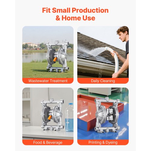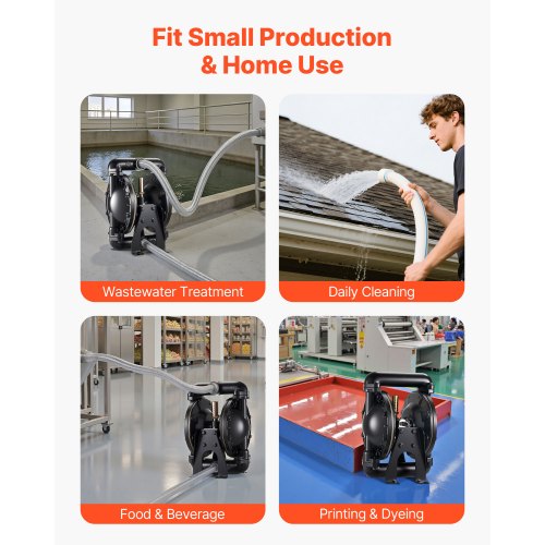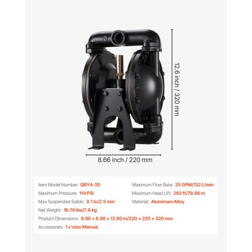 VEVOR Air Operated Double Diaphragm Pump, 6.6 GPM, 3/8 inch Inlet & Outlet Pneumatic Waste Oil Transfer Pump, Max 100 PSI, Aluminum Alloy Body, Air-Operated for Diesel, Grease, Kerosene, Gasoline