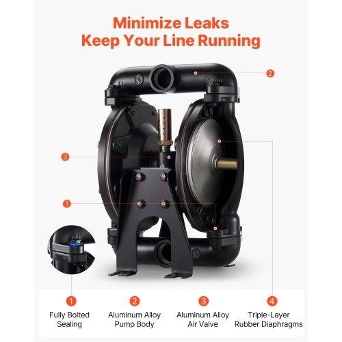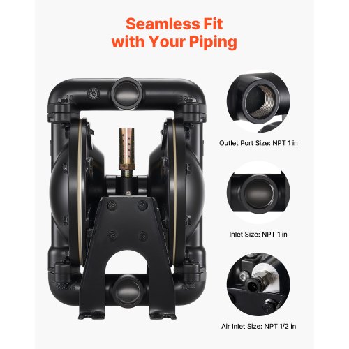 VEVOR Air Operated Double Diaphragm Pump, 35 GPM, 1 inch Inlet & Outlet Pneumatic Waste Oil Transfer Pump, Max 114 PSI, Aluminum Alloy Body, Air-Operated for Diesel, Grease, Kerosene, Gasoline & Oil