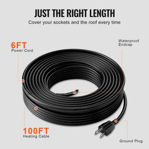 VEVOR Self-Regulating Pipe Heating Cable, 100FT 5W/FT Heat Tape for Pipes, Roof Snow Melting De-icing, Gutter and Pipe Freeze Protection