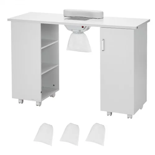 VEVOR Manicure Table, Nail Table Station with Electric Dust Collector, Moveable Nail Tech Desk with 8 Wheels (4 Lockable), 3 Dust Bag & Wrist Rest, MDF Nail Art Workstation for Spa Beauty Salon, White
