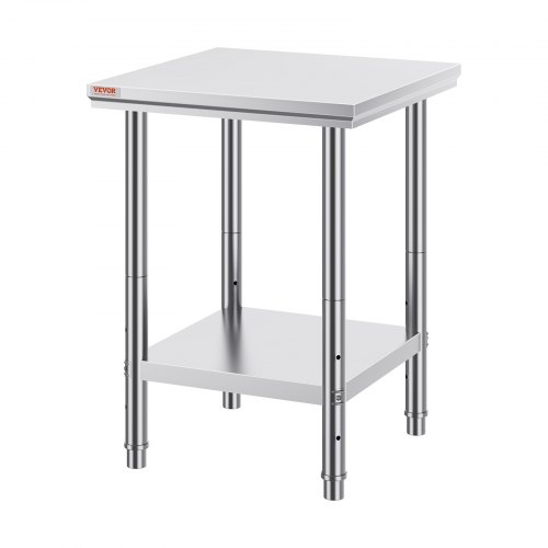 VEVOR Stainless Steel Prep Table, 30 x 48 x 34 Inch, 880 lbs Load Capacity, Heavy Duty Metal Worktable with 3 Adjustable Height Levels, Commercial Workstation for Kitchen Garage Restaurant Backyard