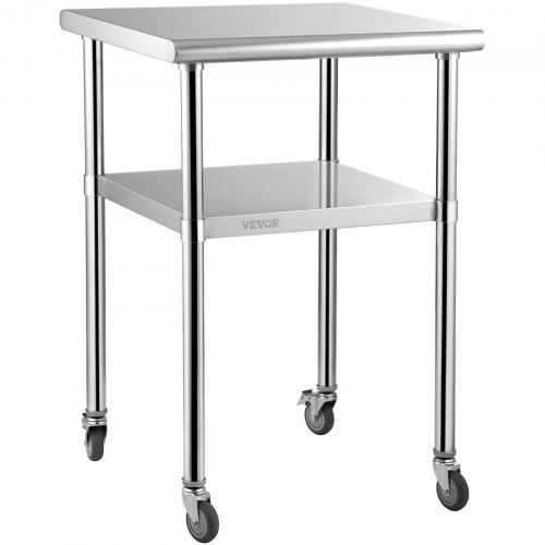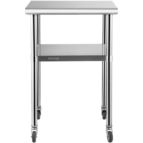 VEVOR Stainless Steel Food Prep Table, 18 x 48 x 34 Inch Commercial Kitchen Worktable, with 2 Adjustable Undershelf, Heavy Duty Prep Table Metal Work Table for BBQ, Kitchen, Home, and Garage