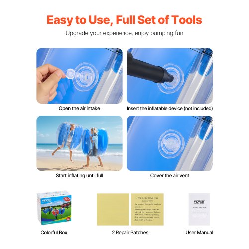 VEVOR Inflatable Bumper Balls 2-Pack, 3FT/0.9M Body Sumo Ball, Durable Thick PVC Human Hamster Bubble Knocker for Outdoor Team Gaming Play, Bopper Toy for Playground Yard Park, Blue Stripes
