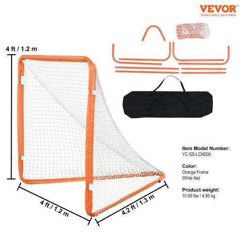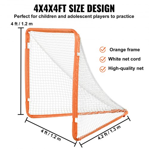 VEVOR Lacrosse Goal, 4' x 4' Small Kids Lacrosse Net, Folding Portable Lacrosse Goal with Carry Bag, Iron Frame Backyard Training Equipment, Quick & Easy Setup, Perfect for Youth Training, Orange