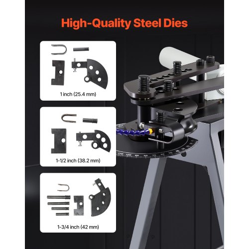 VEVOR YP-9 Manual Bench Top Compact Bender Pipe Bending Machine 7 Dies 1-3inch Metal Fabrication Tube Rod Pipe Bender 44ft Mount Powdercoat Telescoping Handle Maximum 5/8 Thick 1-15/16inch Width