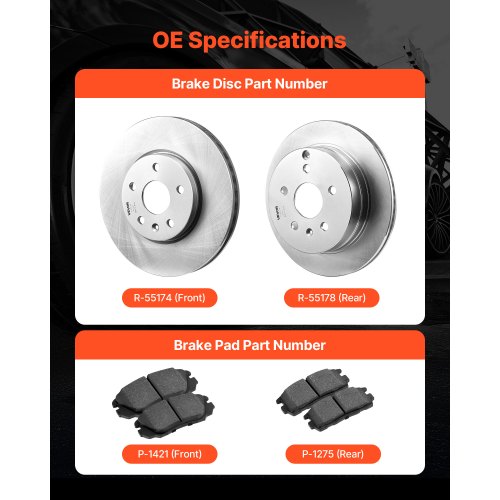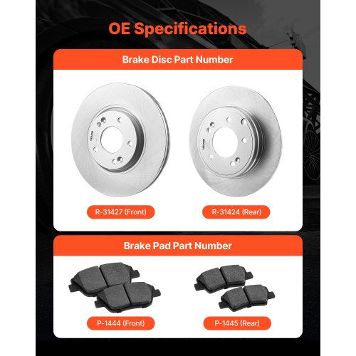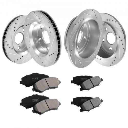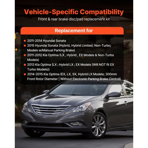 VEVOR Front & Rear Brake Kit Compatible with 2011-2014 Hyundai Sonata, 2015 Hyundai Sonata (Hybrid, Hybrid Limited; Non-Turbo; Models w/Manual Parking Brake), Hollow Brake Rotors & Solid Rear Rotors