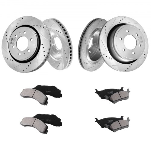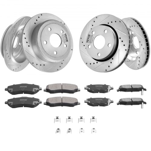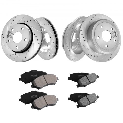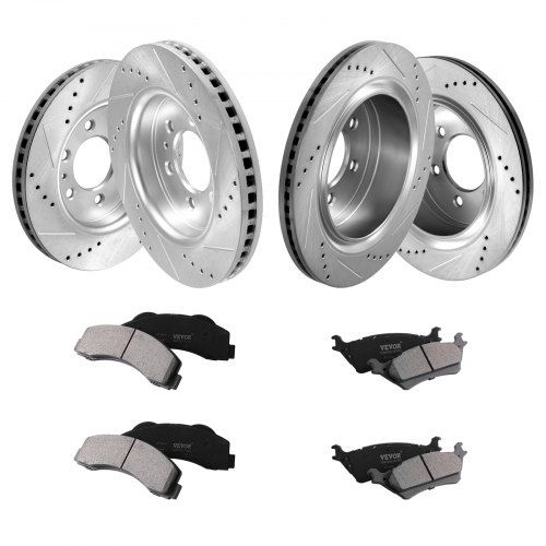 VEVOR Front and Rear Brake Kit Compatible with Toyota Sienna, Highlander, Lexus RX350, RX450h, Drilled and Slotted Brake Rotors Ceramic Brake Pads Replacement, 12.9" Front Rotors 12.2" Rear Rotors