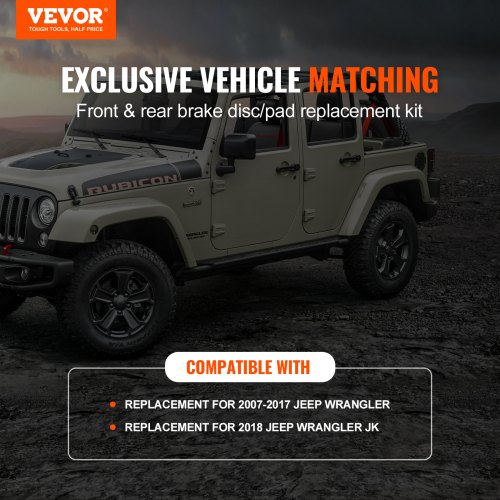 VEVOR Front and Rear Brake Kit Compatible with 2007-2017 Jeep Wrangler, Drilled and Slotted Brake Rotors Ceramic Brake Pads Replacement, 11.9" Front Rotors 12.4" Rear Rotors