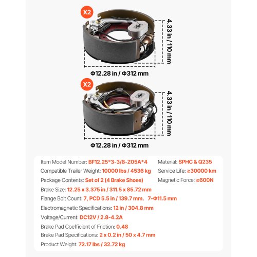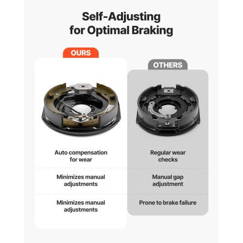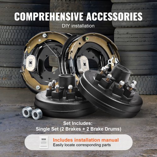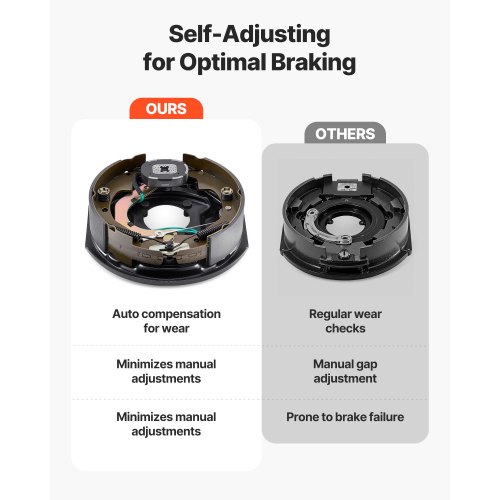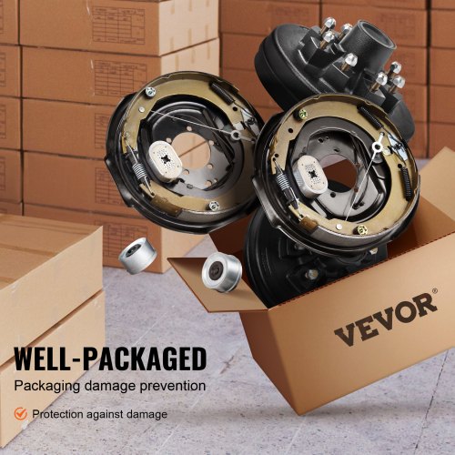 VEVOR Trailer Hub Drum Kits 8 on 6.5" B.C. with 12" x 2" Electric Brakes, Self-Adjusting Trailer Brake Assembly for 7000 lbs Axle, 5-Hole Mounting, Backing Plates for Brake System Part Replacement