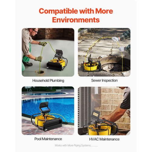 VEVOR Sewer Camera, 98 ft/30m, Self-Leveling Drain Inspection Camera with 9" 1080P HD Screen, 36X Zoom, IP68 Waterproof Plumbing Camera with Lights-12 LED, 32GB Card Snake Camera for Duct Pipe