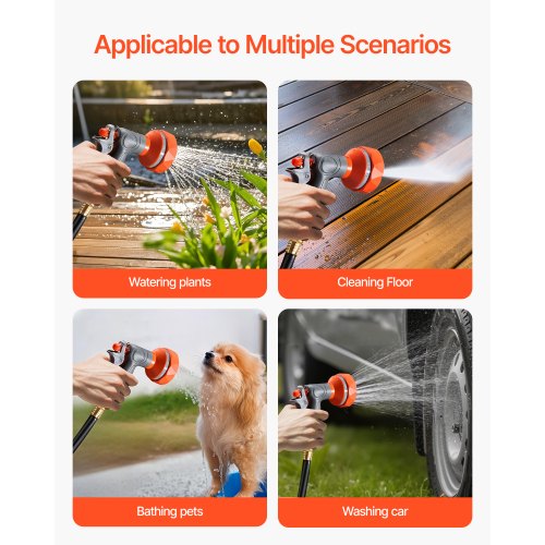 VEVOR Metal Garden Hose 50 ft, Rust Proof Stainless Steel Water Hose, Heavy Duty Backyard Hose with 10 Function Nozzle, No-Kink & Flexible Water Pipe, Lightweight Metal Hose for Yard, Outdoor